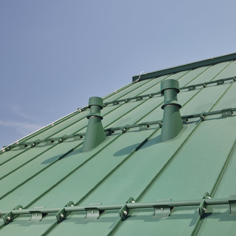 Moderni krovni dimnjak dizajniran za FALZ krovni pokrov s promjerom ventilacije 110 i 125 mm. Izrađen od visokokvalitetnog W.15 aluminijskog lima.