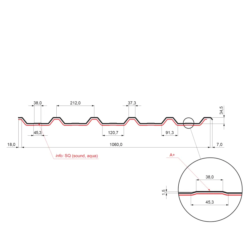 Krovni trapezni pokrov s pojačanjem TR 35A+ SQ (sound – aqua)