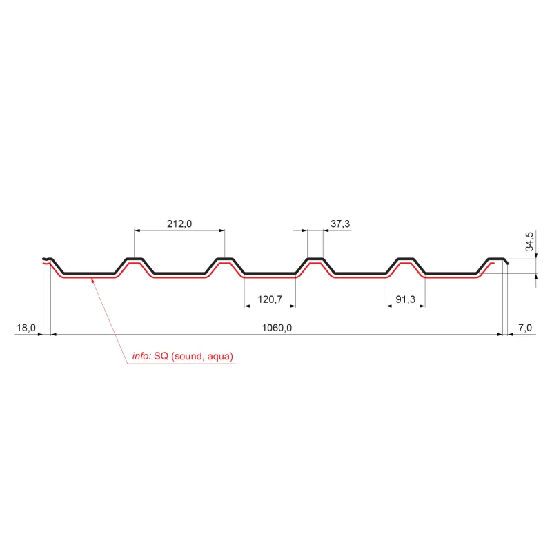 Krovni trapezni pokrov TR 35A SQ (sound – aqua)