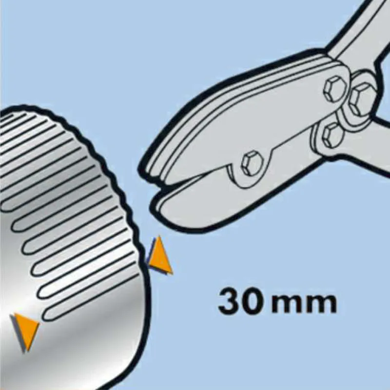 Kliješta za falcanje s tri zuba za valovitost svih KJG odvodnih cijevi. Maksimalno uvijanje na duljini od 30 mm.