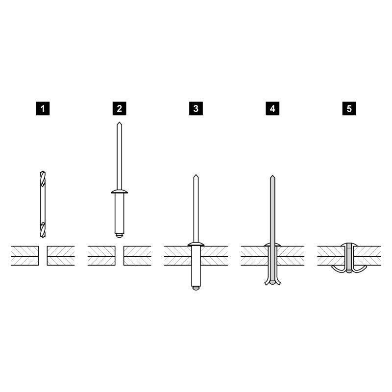 Nakon ugradnje kraj zakovice se rastvori kao kod guljenja banane - nastaje "cvjetna glavica".